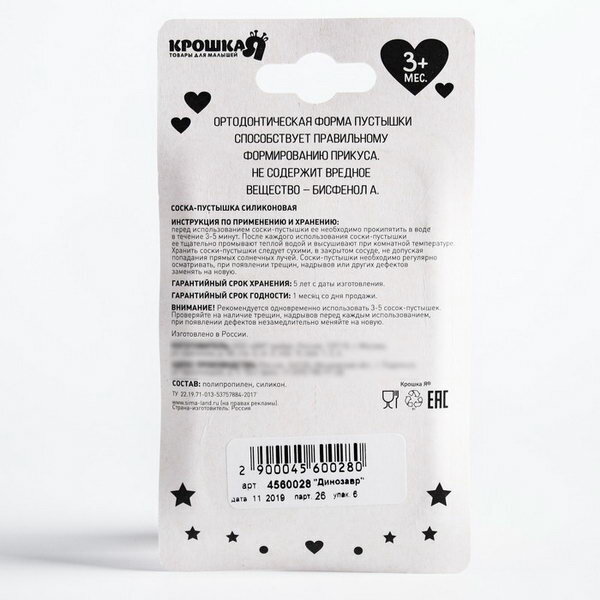 Соска - пустышка силиконовая ортодонтическая "Динозавр", от 3 мес. интересное: