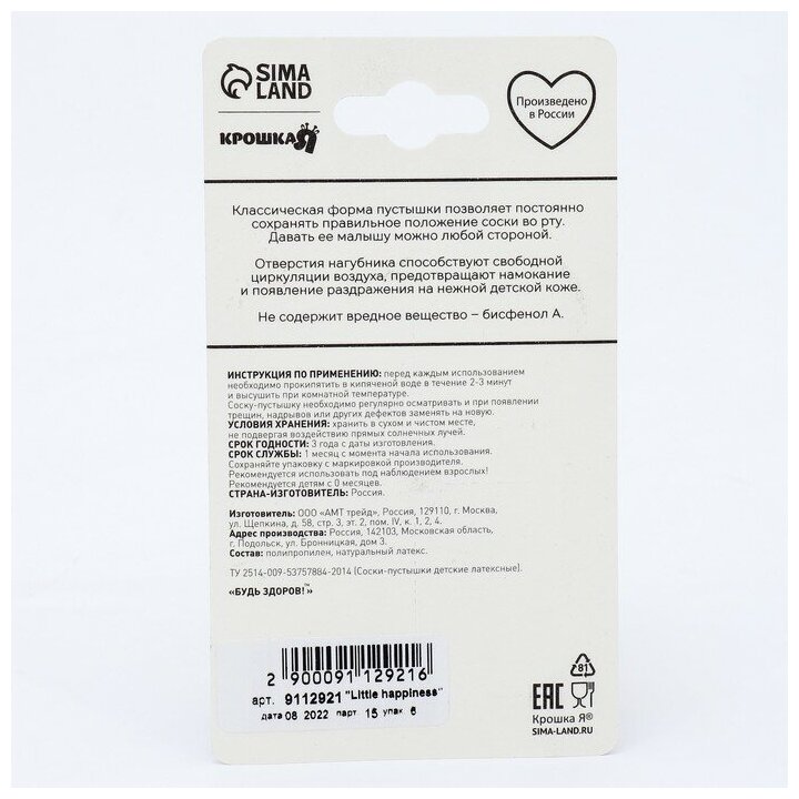 Соска-пустышка классическая, от 0 мес., латекс Little happiness интересное: