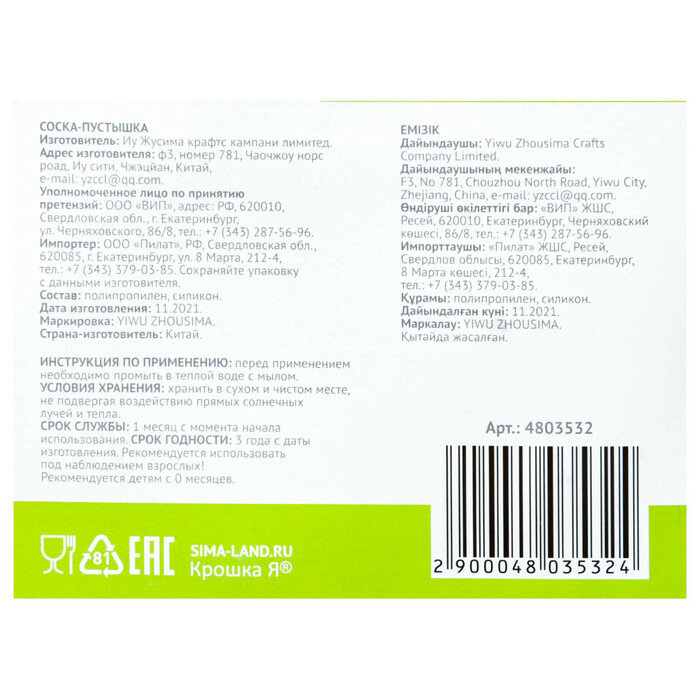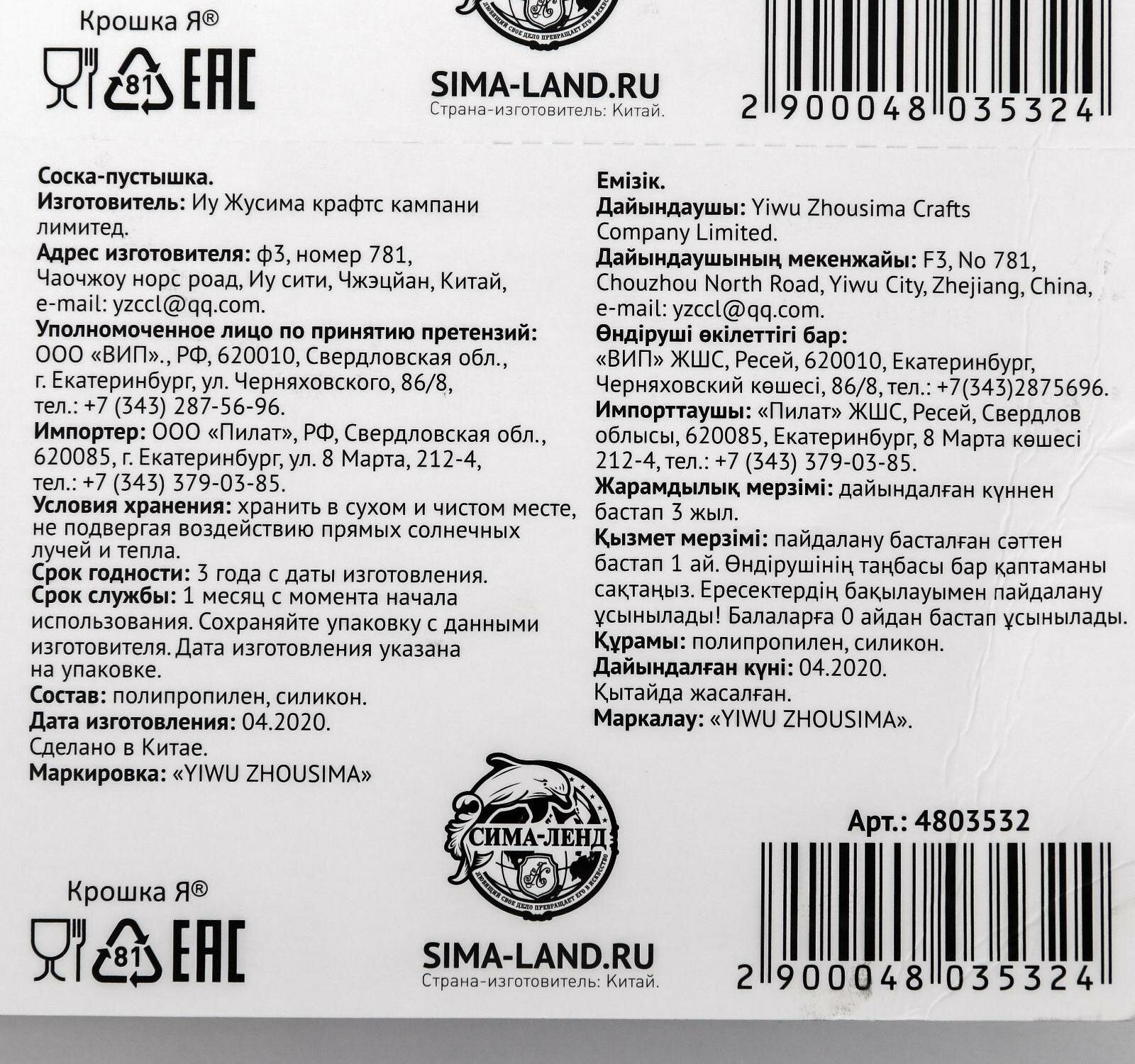 Пустышки Крошка Я Пустышка классическая, с держателем, +0мес., на блистере, цвет микс