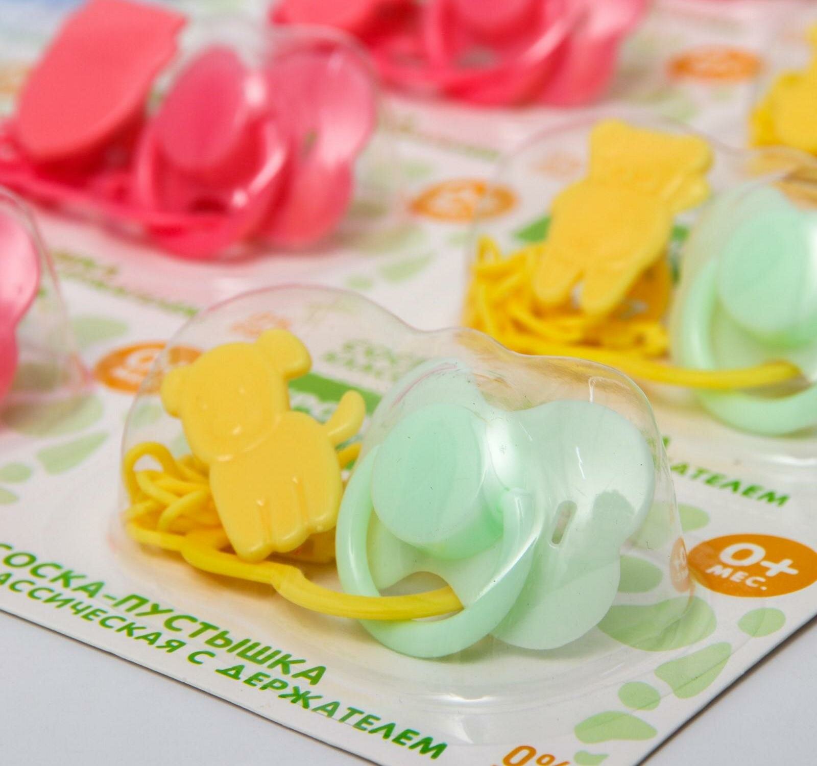 Соска - пустышка силиконовая классическая, от 0 мес., с держателем, цвет микс
