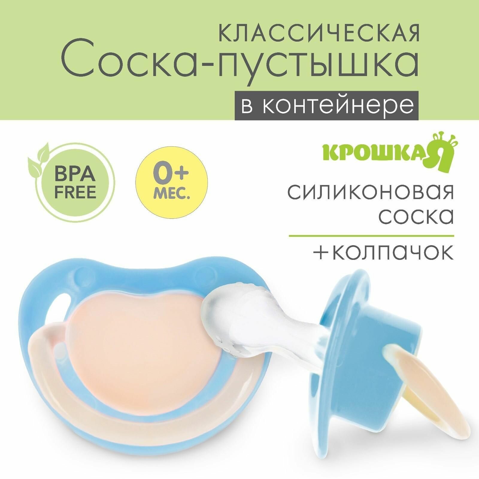Пустышки Крошка Я Соска-пустышка анатомическая, силикон, от 0 мес., цвет голубой