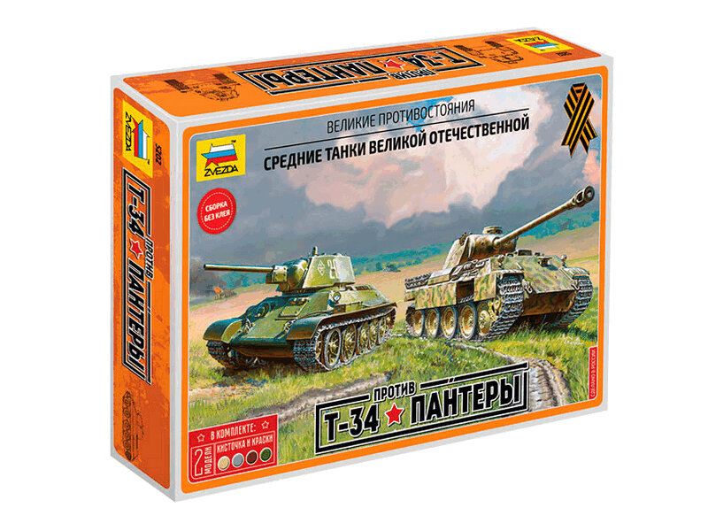 Купить Сборная модель ZVEZDA Великие противостояния "Т-34 против Пантеры" (сборка без клея), 1/72