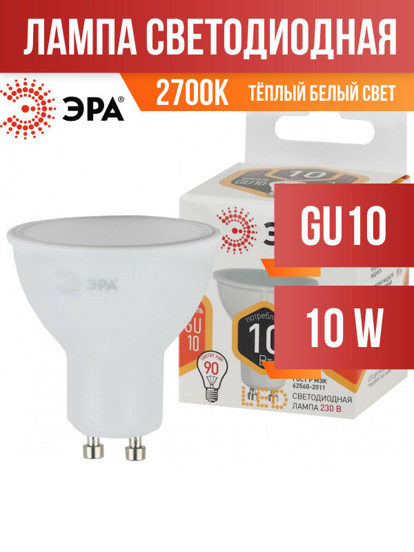 Купить ЭРА стандарт MR16 GU10 220V 10W(800lm) 2700K 2K 60x50 LED MR16-10W-827-GU10 2813 (арт. 661923)