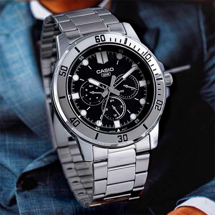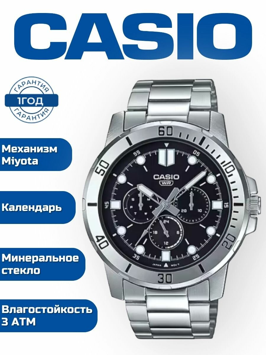 Наручные часы CASIO Collection MTP-VD300-1B, серебряный, черный