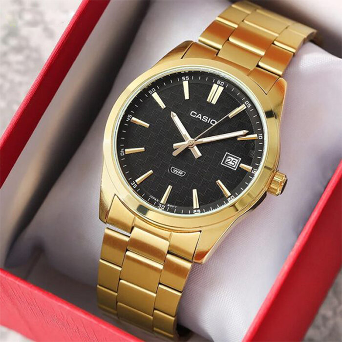 MTP-VD03G-2A Casio наручные часы кварцевые WR30 (3 атм) мужские золотой отображение числа подсветка стрелок минеральное стекло