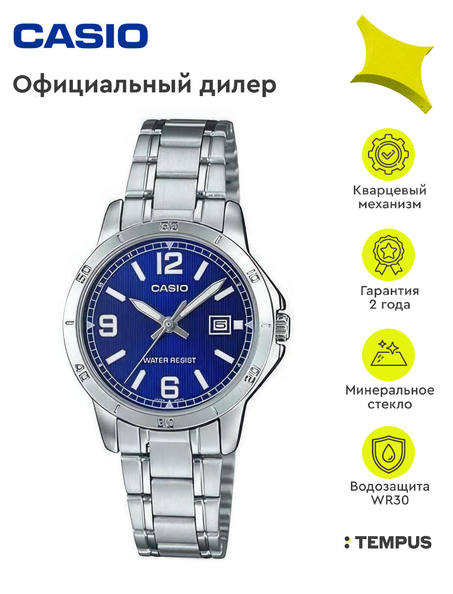 Наручные часы CASIO LTP-V004D-2B, серебряный, синий