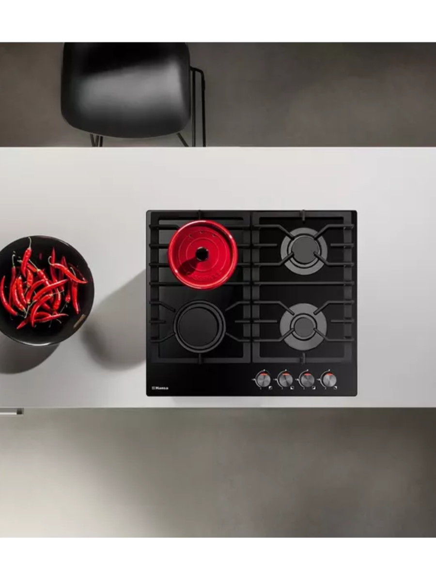 Газовая варочная панель Hansa BHKS610301, стеклянная поверхность, с газ-контролем и автоподжигом, черная