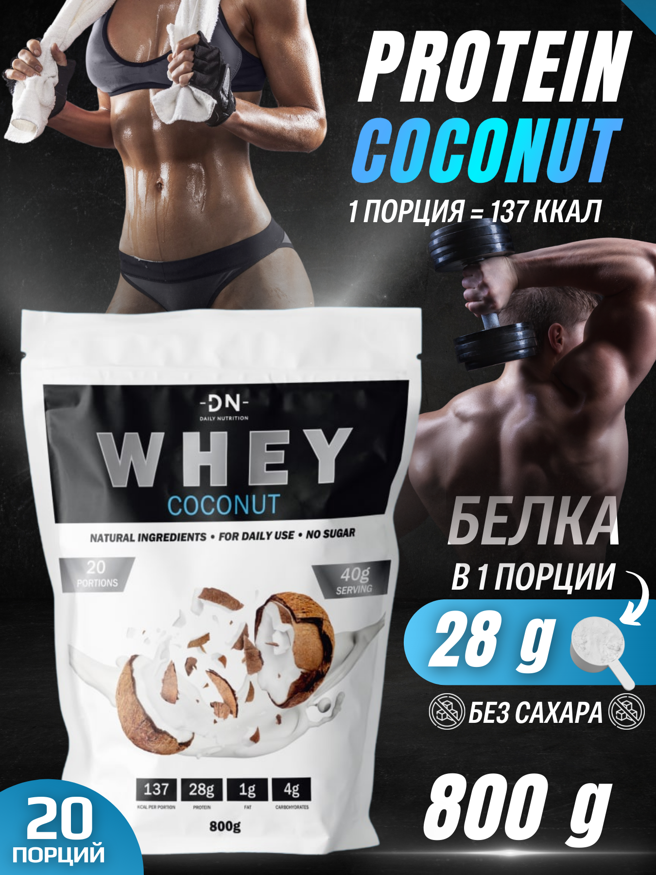 Купить Протеин сывороточный DN Whey, изолят, протеиновый белковый коктейль, спортивное питание для женщин/мужчин, без сахара, 800 г, вкус кокос
