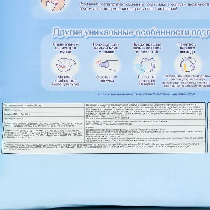 Подгузники MOONY NB (до 5 кг), 90 шт./В упаковке шт: 1 интересное: