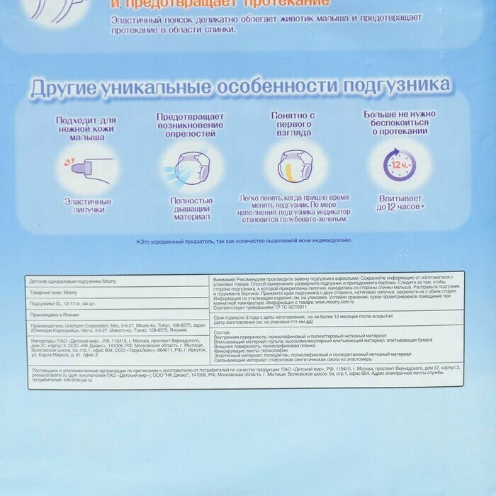 Подгузники детские, подгузники, XL (12-17 кг), 44 шт интересное: