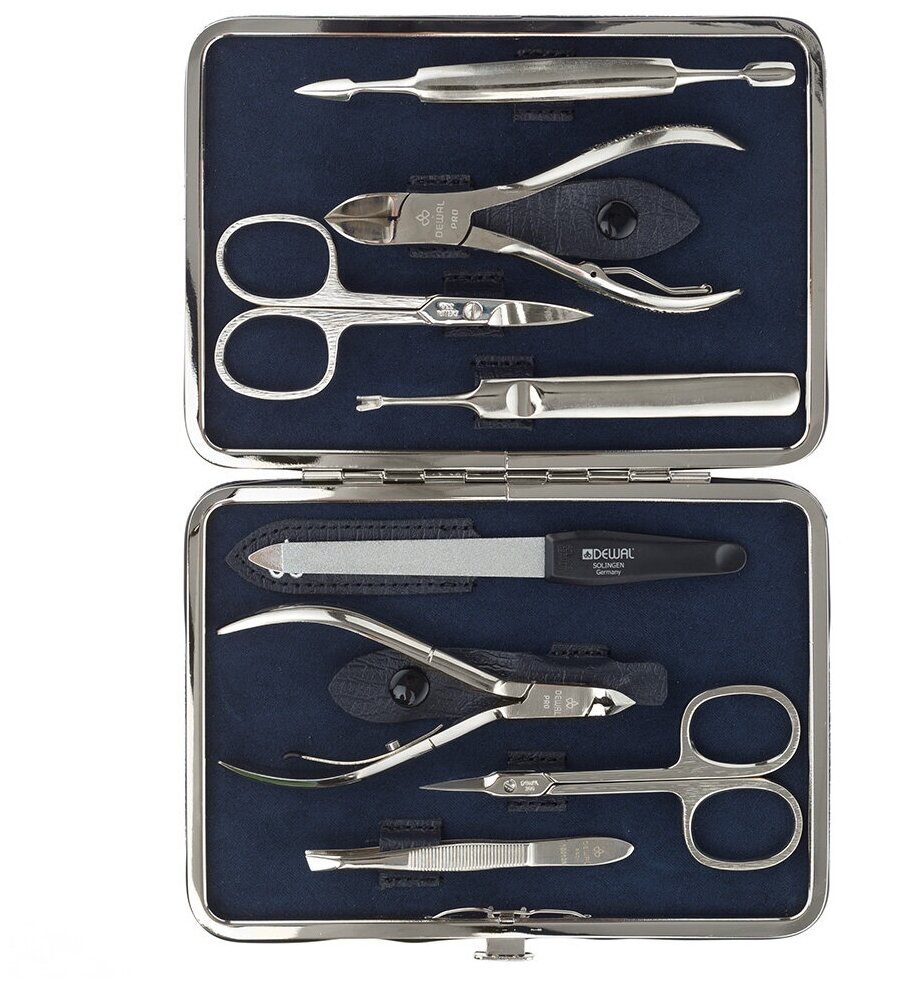 Маникюрный набор DEWAL, 8пр. Футляр: натуральная кожа, цвет синий