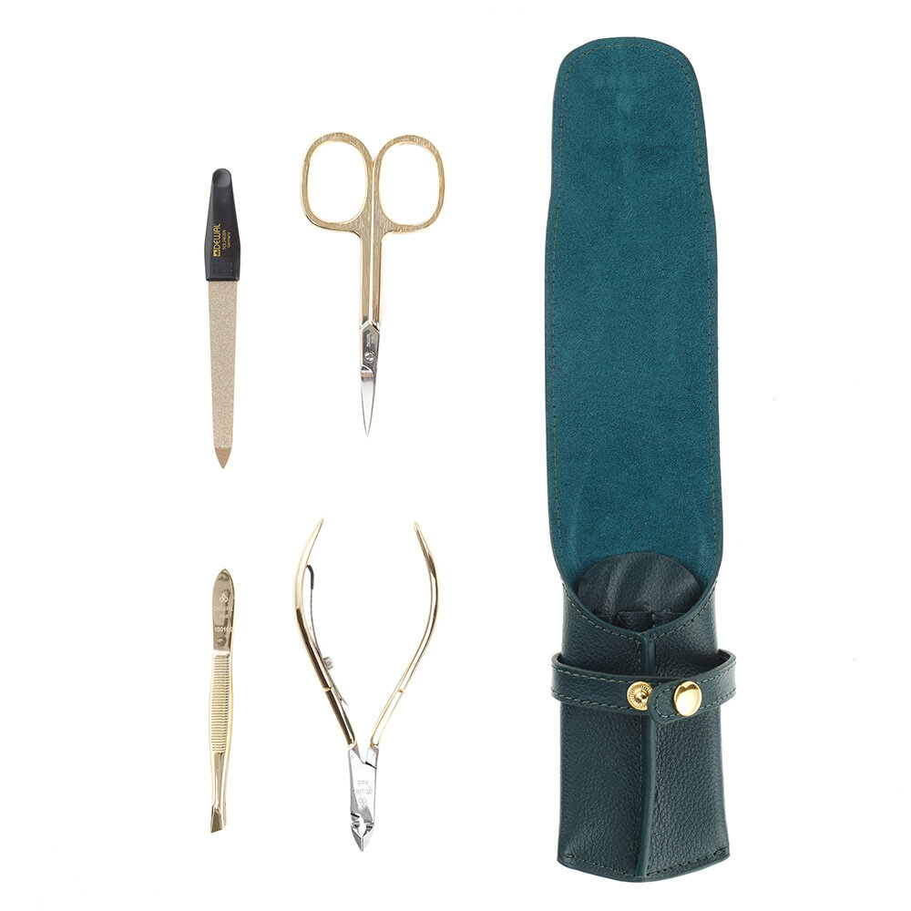 Маникюрный набор DEWAL серии "Современная классика" 4 предмета, футляр натуральная кожа, цвет зеленый (901GREEN)