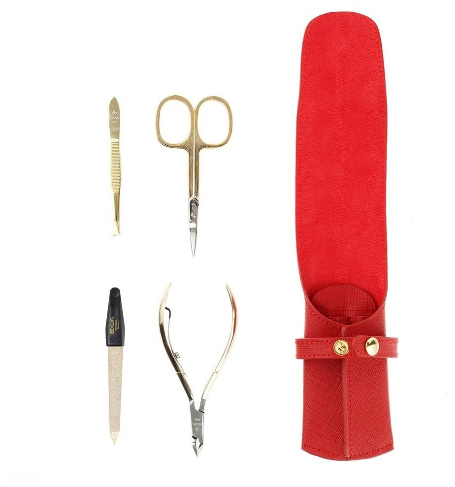 Маникюрный набор DEWAL, 4пр. Футляр: натуральная кожа, цвет красный, 901RED