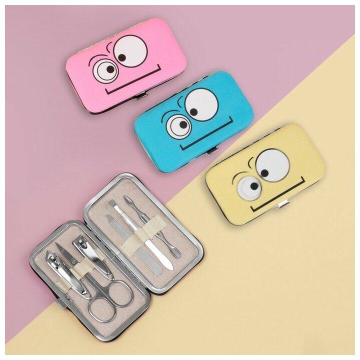 Набор маникюрный «Смайлики», 6 предметов, в футляре, цвет микс (комплект из 5 шт)