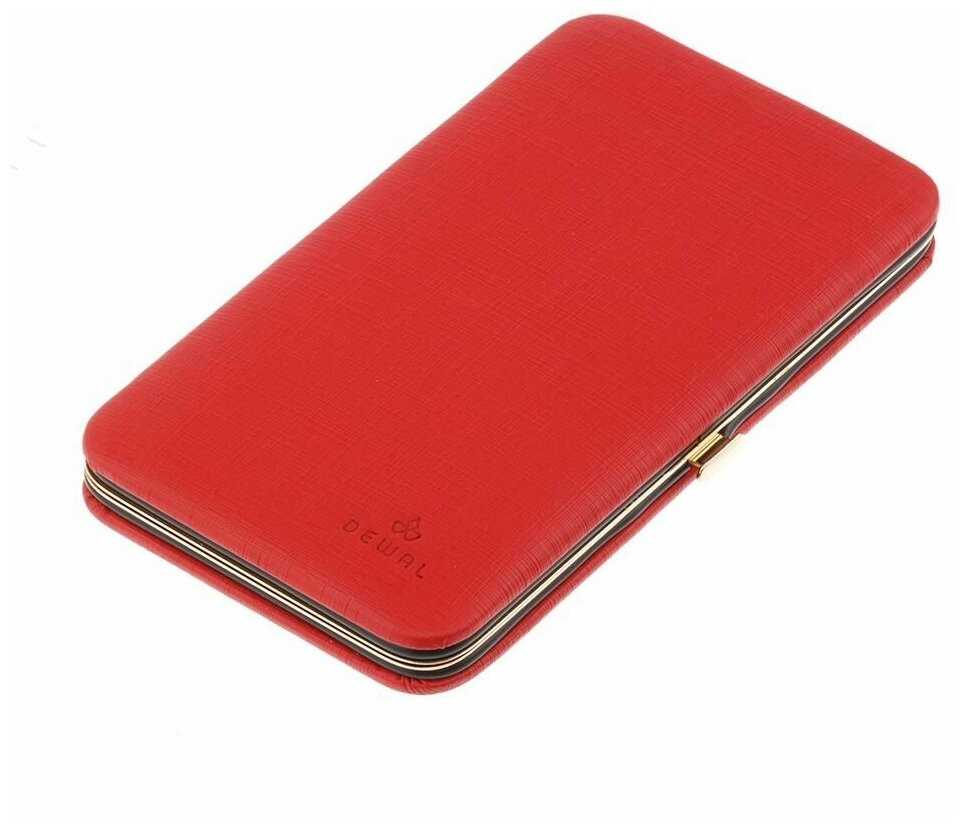 Маникюрный набор DEWAL, 7пр. Футляр: натуральная кожа, цвет красный, 905RED