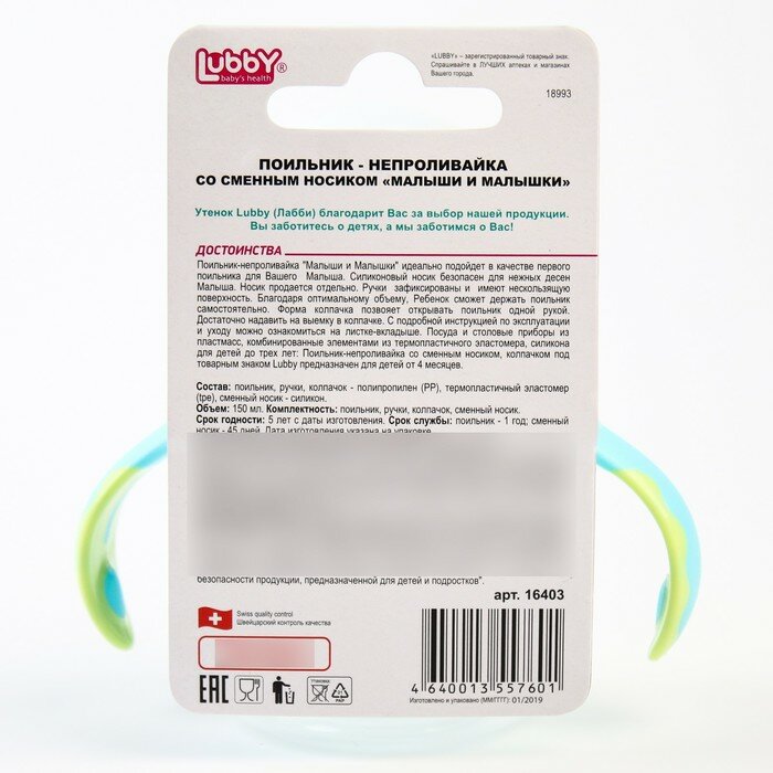 Lubby Поильник-непроливайка с мягким носиком "Малыши и Малышки", 150 мл, от 4 мес., с ручками, цвета микс интересное: