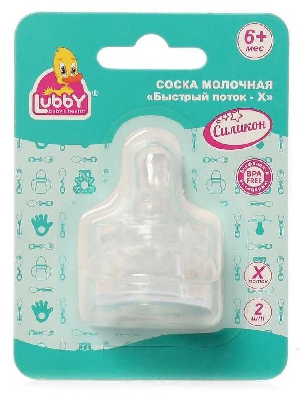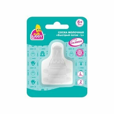 Соска Lubby молочная силиконовая, быстрый поток с 6 мес. 2 шт.