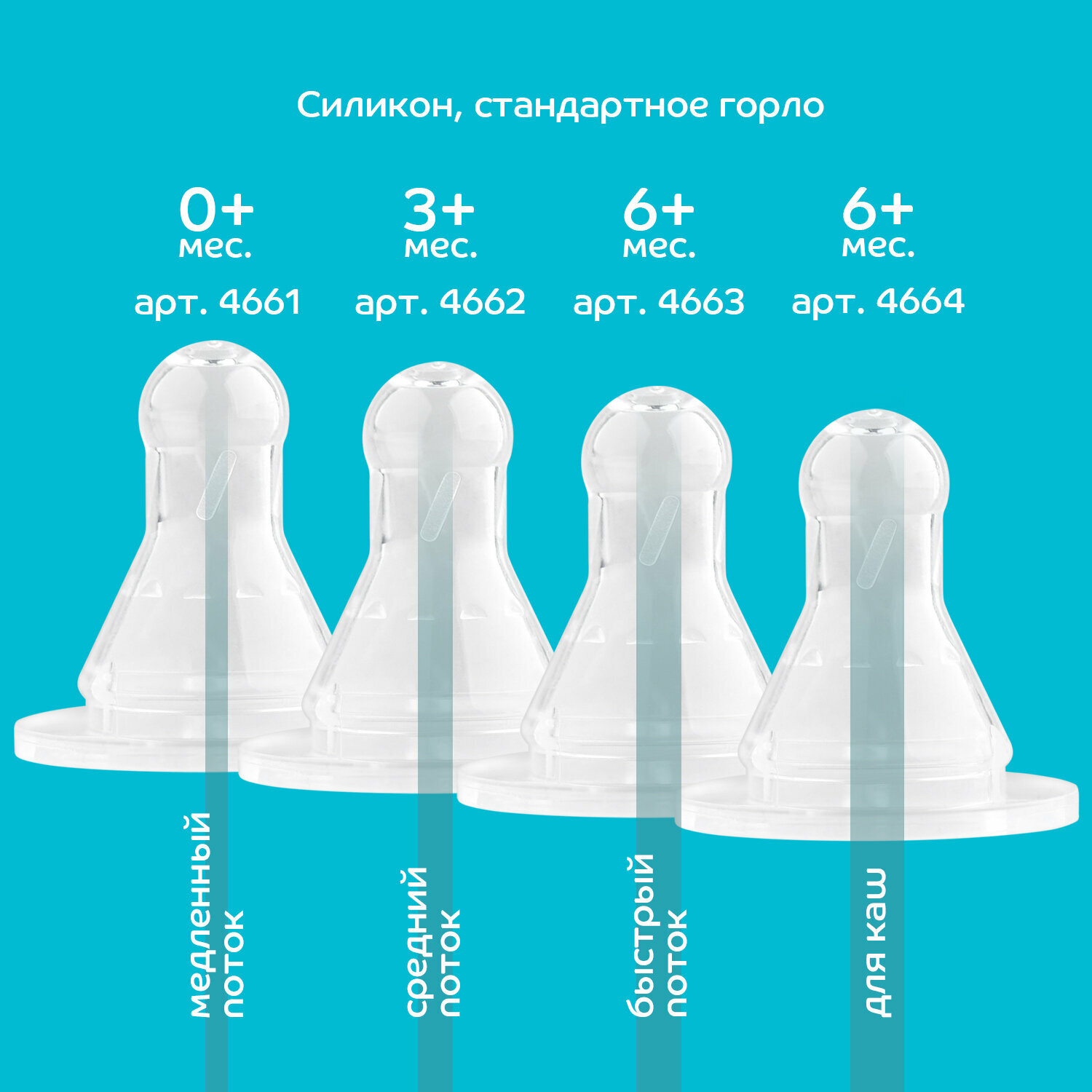 Антиколиковая соска силиконовая МирДетства для бутылочки с широким горлом, точечное отверстие и быстрый поток 6+, 1 шт.