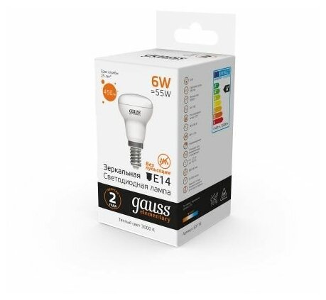 Светодиодная лампа GAUSS Elementary R50 6W 450lm 3000K Е14 LED 1/10/50