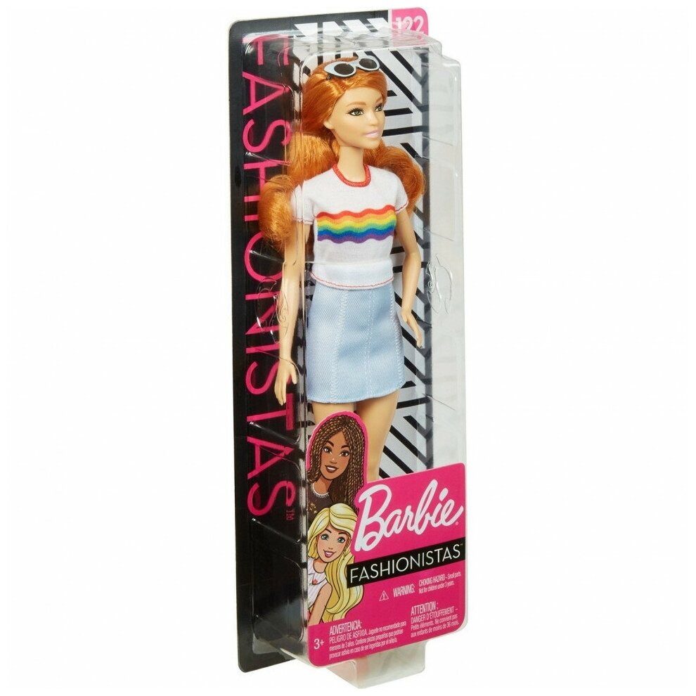 Кукла Barbie Игра с модой, 29 см, FXL55 рыжая в футболке с радужными волнами