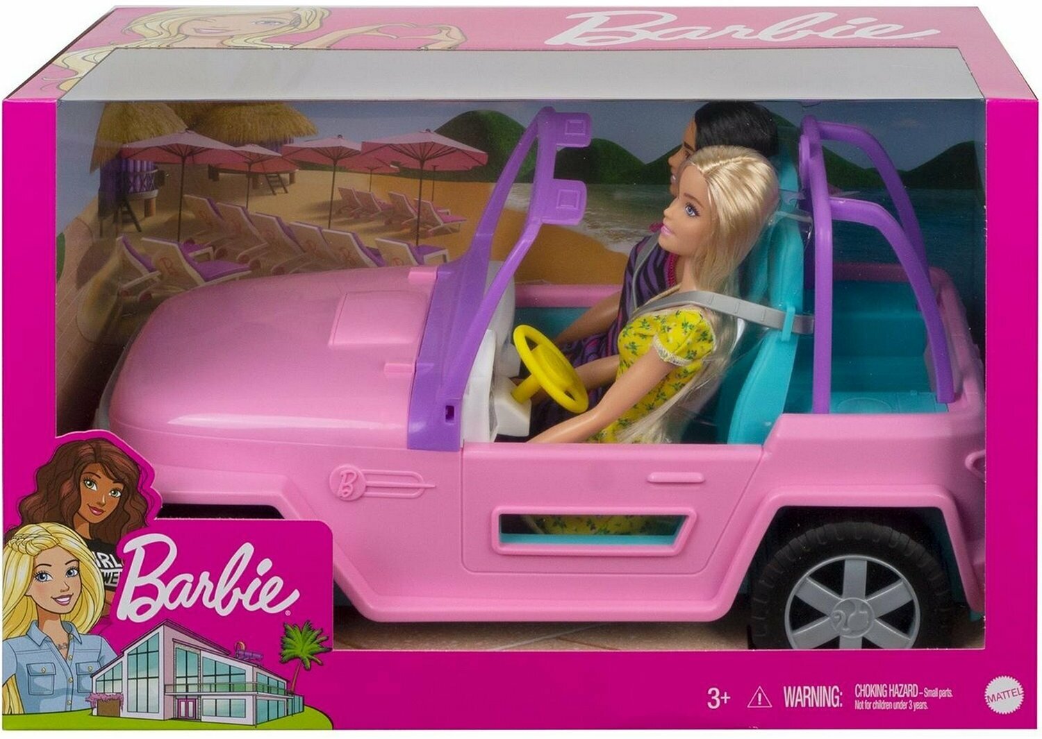 Mattel Barbie Кукла Барби с подругой на машине джипе розовом GVK02