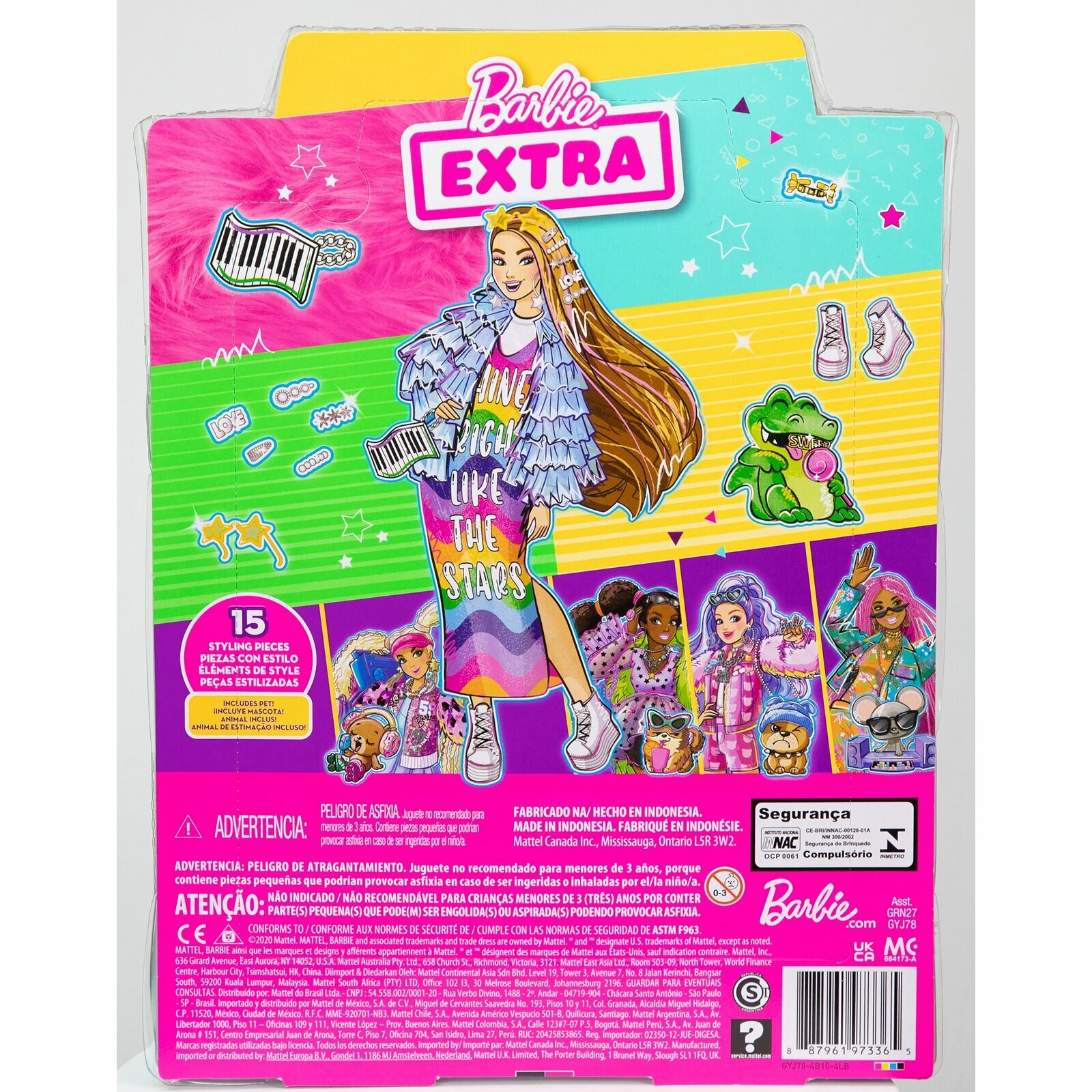 Barbie Кукла Экстра в радужном платье, GYJ78