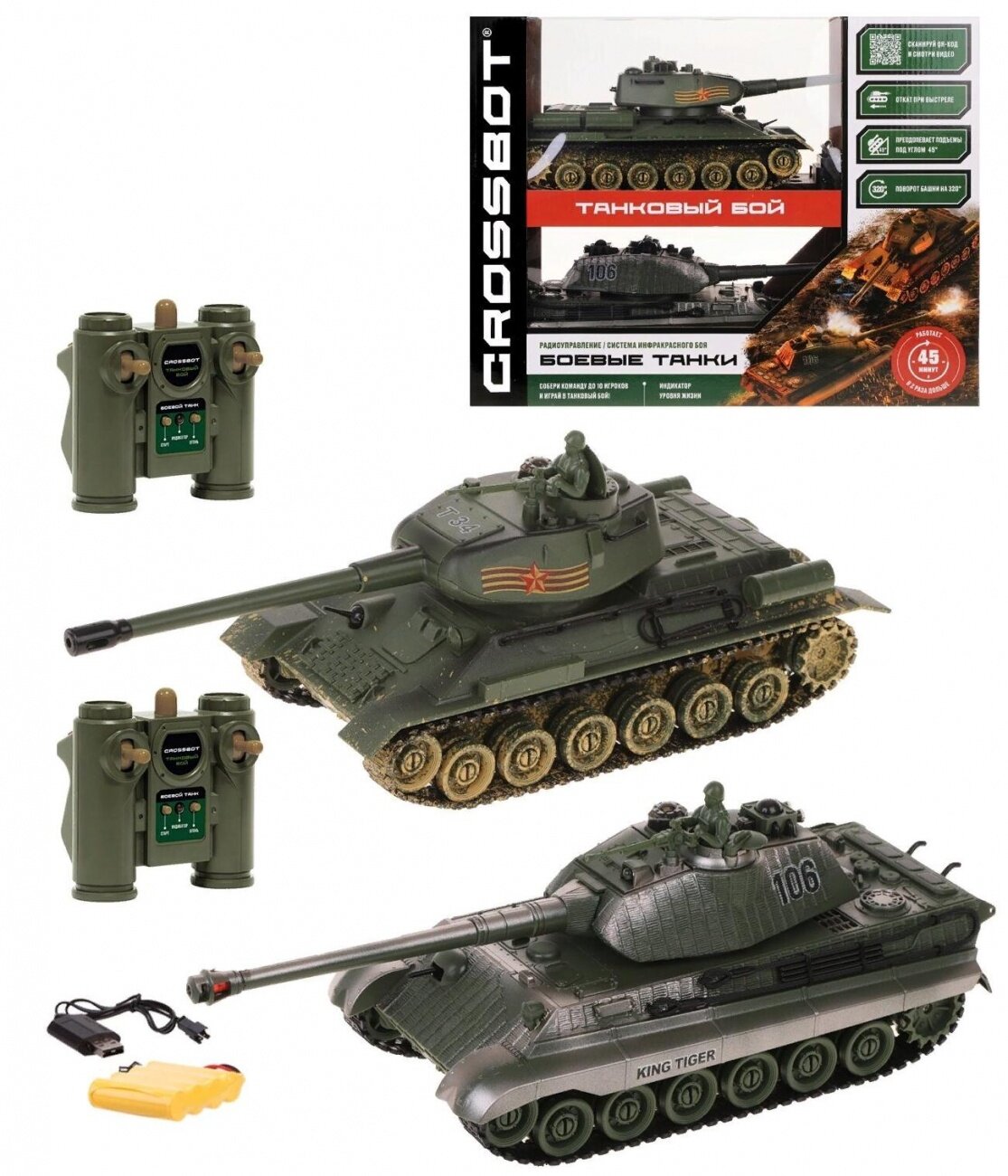 Танковый бой Crossbot р/у 1:24 Т-34 (СССР) - GERMANY KING TIGER (Германия) аккум 870622