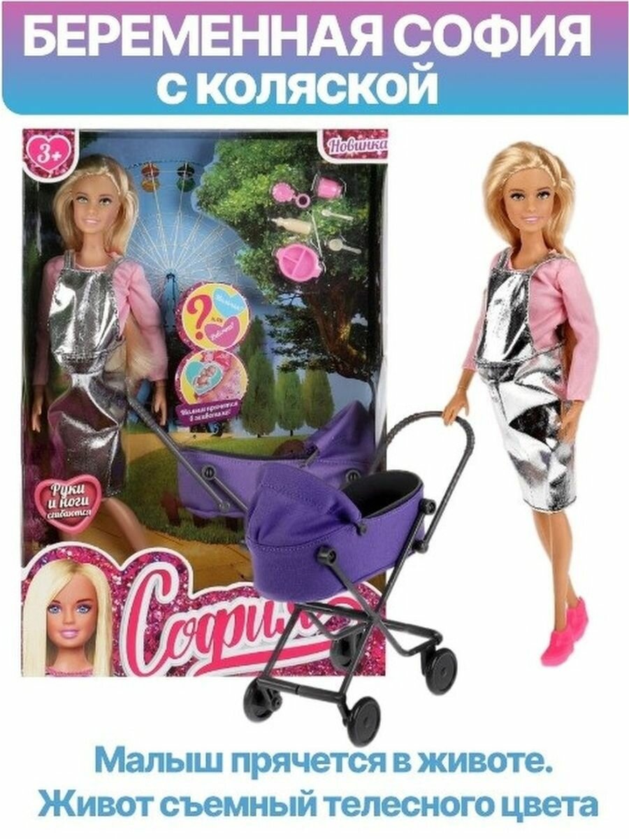 Кукла модельная софия семья 29 см с коляской и аксессуарами, малыш прячется в животике софия И алекс 66001B1-SET5-S-BB