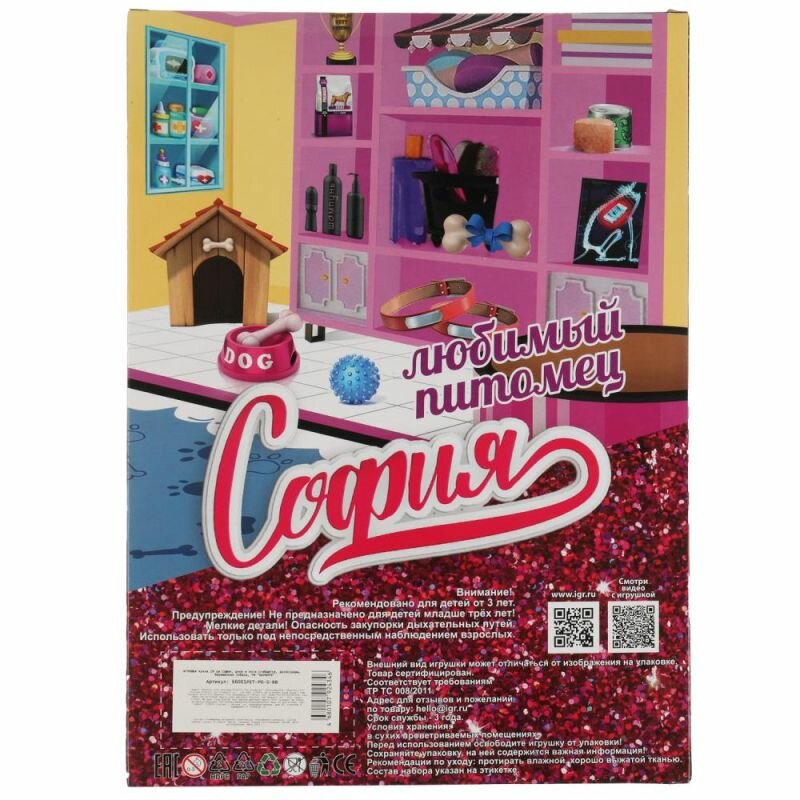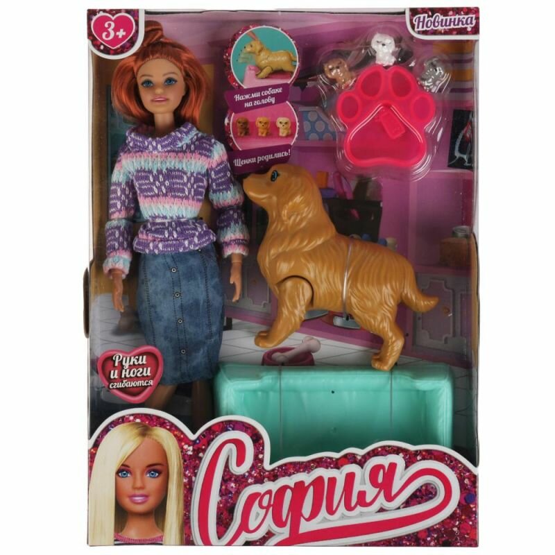 321532 Кукла 29 см София, руки и ноги сгиб, акс, собака пьет и писает, кор карапуз