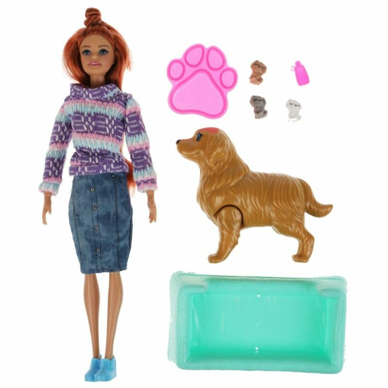 Кукла София карапуз шарнирная типа Барби с питомцем, собака пьет и писает 66001PET-DDP-S-BB