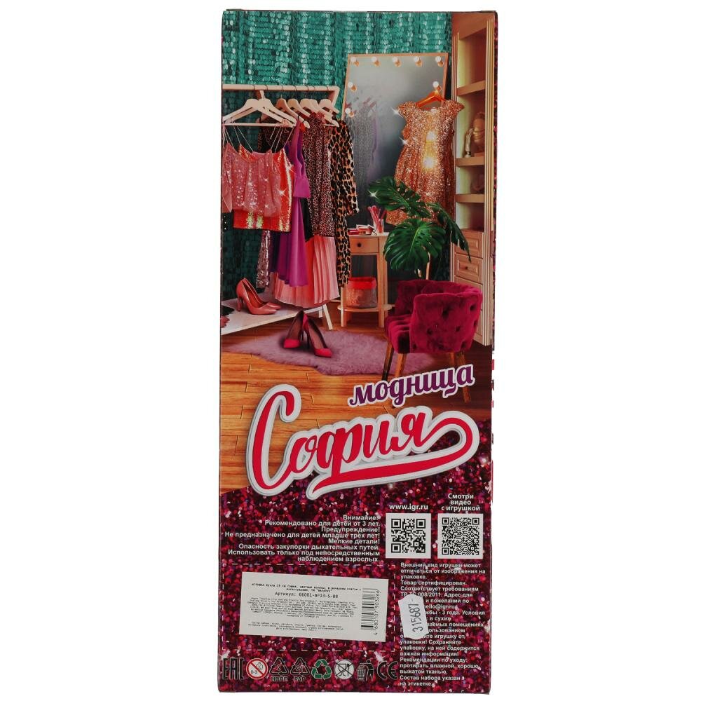Карапуз Кукла София 29 см цветные волосы в вечернем платье с аксессуарами 66001-BF13-S-BB с 3 лет интересное: