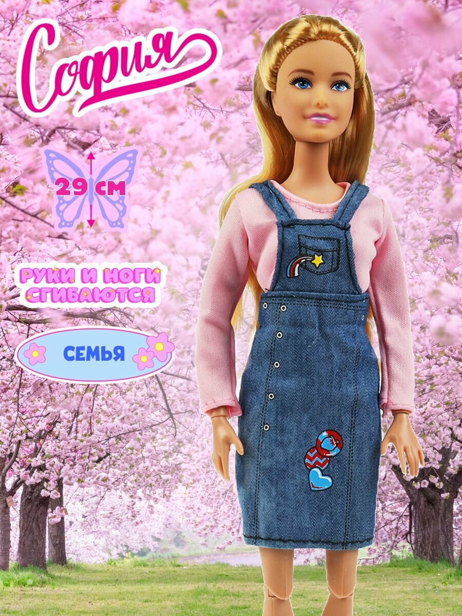 Кукла Карапуз София в джинсовом сарафане, 29 см, с ребенком 66001-SET08-S-BB