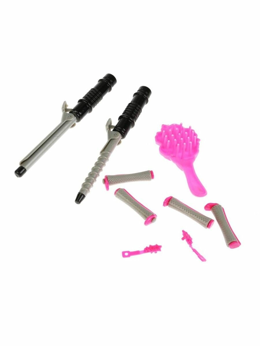 | Комплектация | - кукла; - расчёска; - спиралевидная плойка; - обычная плойка; - 2 заколки; - 4 бигуди. |