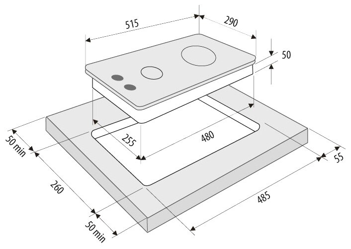 | Дополнительная информация | мощность конфорок: ближняя 1,7 кВт, дальняя 2,6 кВт; данное оборудование предназначено для работы при однофазном напряжении питания 220–230 В~, 50–60 Гц |