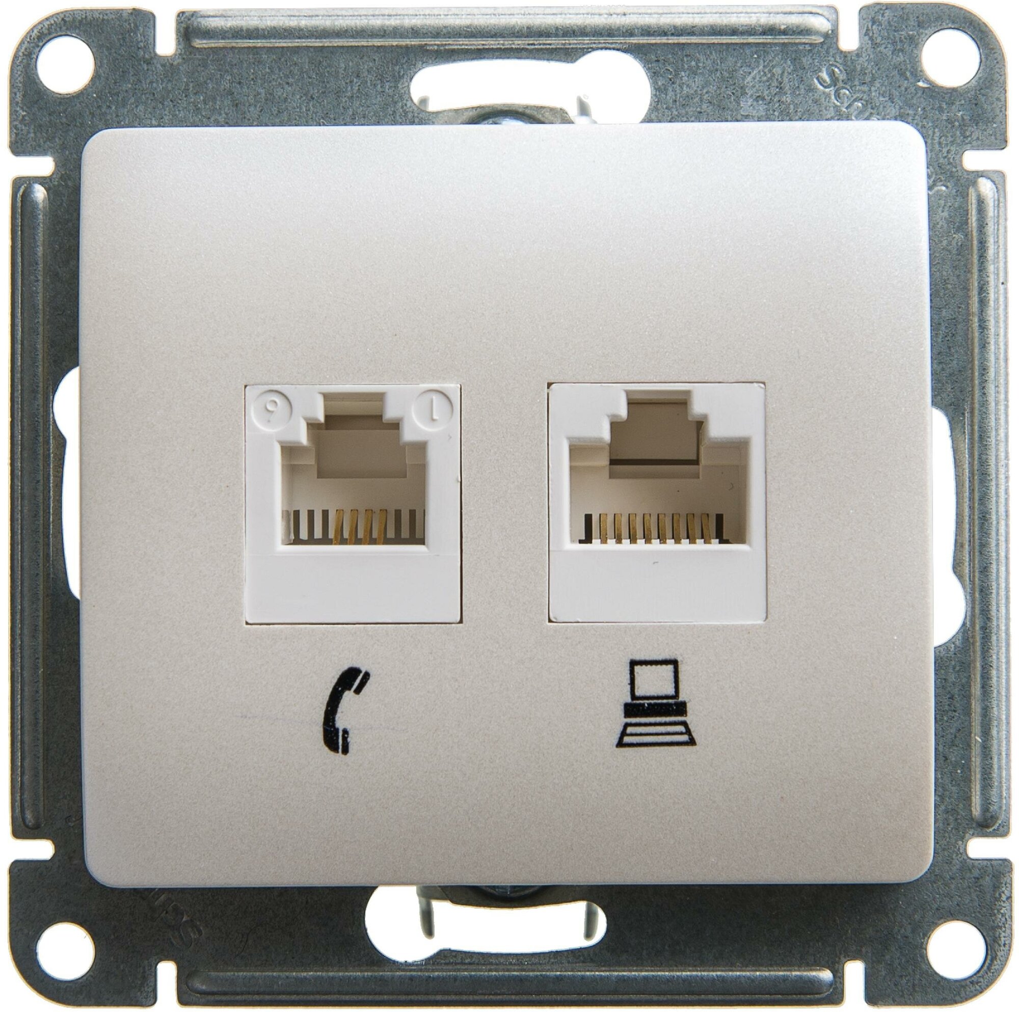 Розетка компьютерная двойная RJ45+RJ45 SE Glossa Перламутр