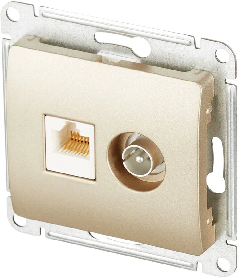 Розетка телевизионная/компьютерная GSL000489 скрытая установка титан IP20 модули TV и RJ48
