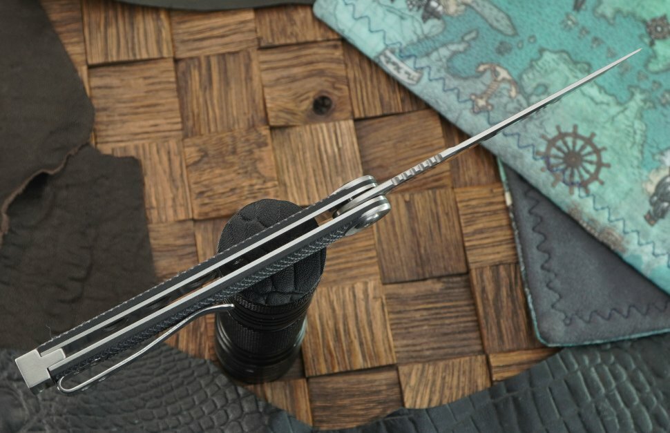 | Минусы: | открывать нож не совсем удобно, маленький флипер и приходится докручивать рукой чтобы лезвие выкинулось силой инерции. не везде есть столько места чтобы махать рукой с ножом. может быть позже как то разработается и будет легче выкидываться. |