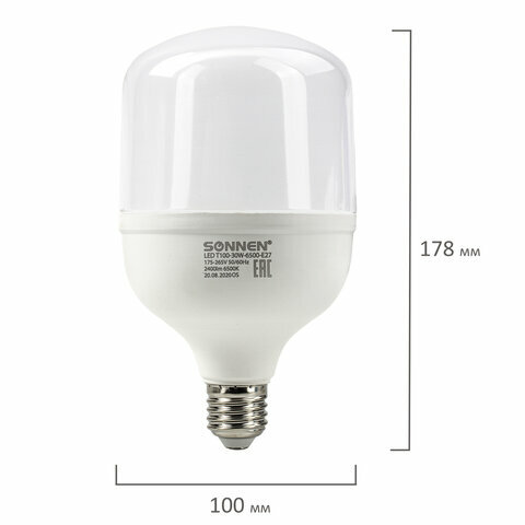 Лампа светодиодная SONNEN, комплект 20 шт., 30 (250) Вт, цоколь Е27, цилиндр, холодный белый, 30000 ч, LED Т100-30W-6500-E27, 454924 интересное: