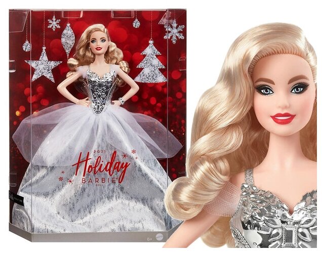 Barbie 2021 Holiday Blonde Wavy Hair (Барби Праздничная 2021 Блондинка с волнистыми волосами) интересное: