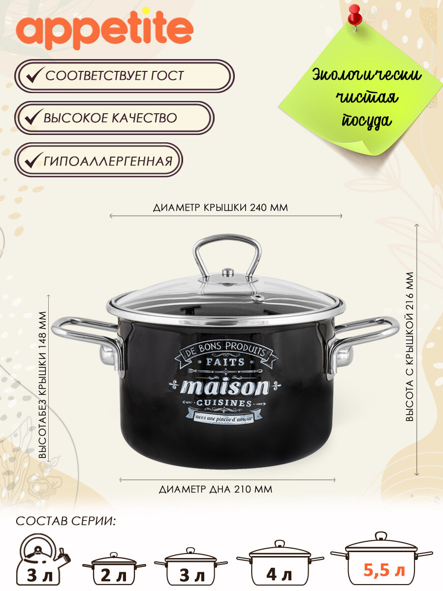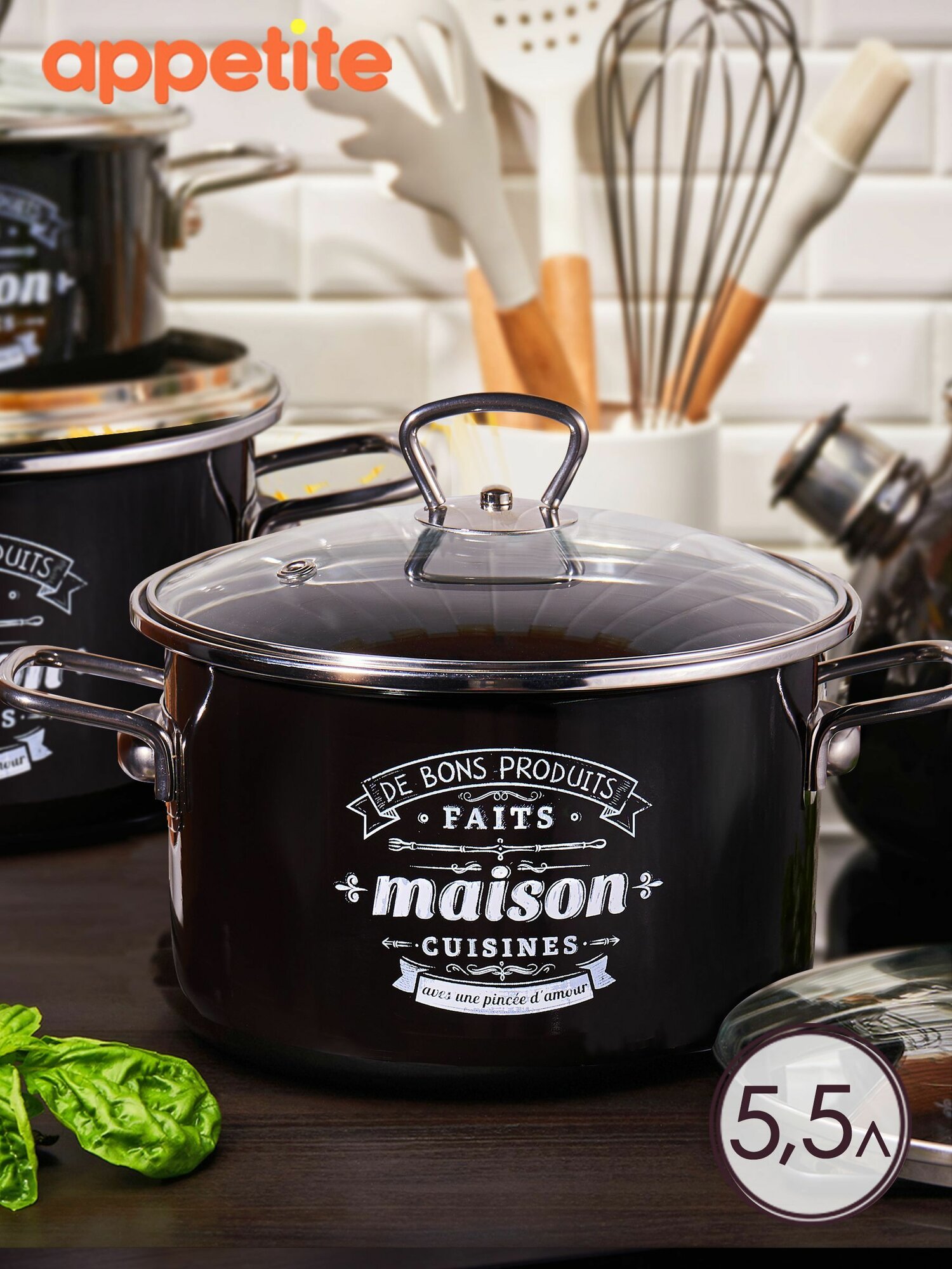 Кастрюля эмалированная с крышкой Maison 5,5л TM Appetite