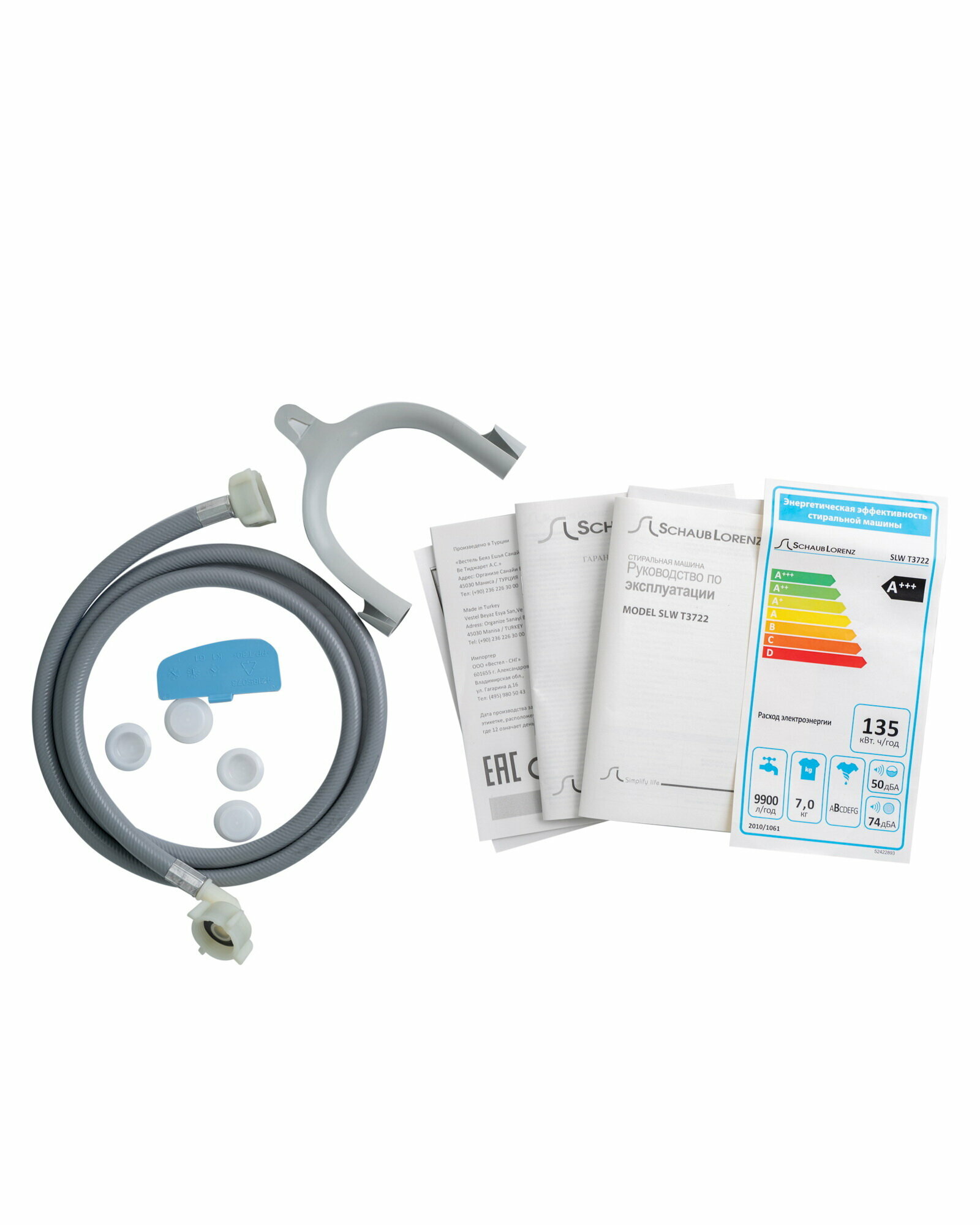 Родные шланг канализации и воды достаточно длинные, протечек не заметила за месяц использования. Совет для читающих отзыв - для этой стиральной машины лучше подбирать жидкие гели для стирки, порошок иногда не до конца вымывался у меня :)) |