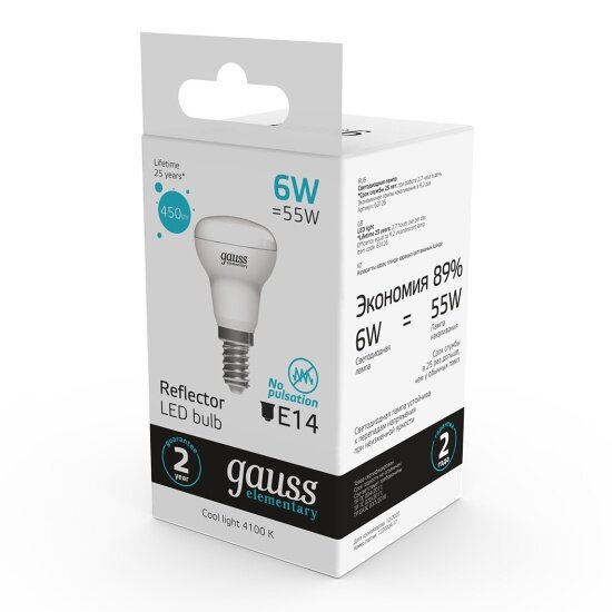 Светодиодная лампа Gauss Elementary R50 6W 450lm 4100K Е14 LED 1/10/50 интересное: