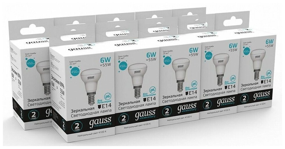 Светодиодная лампа Gauss Elementary R50 6W 450lm 4100K Е14 LED 1/10/50