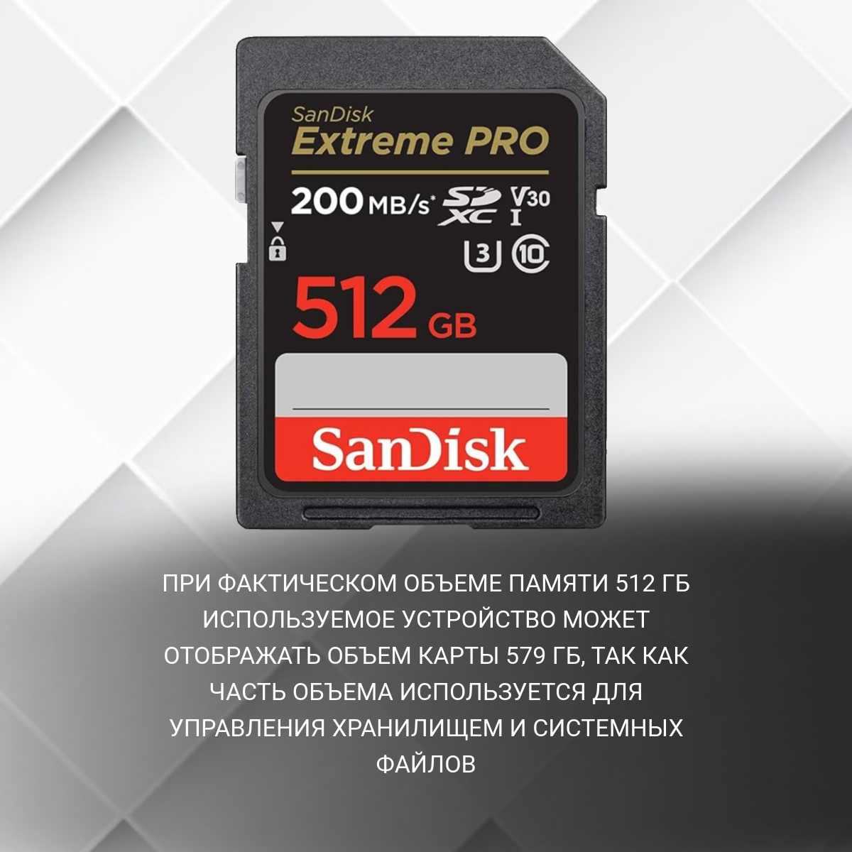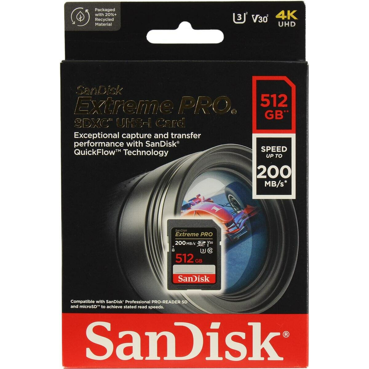 Карта памяти SanDisk Extreme PRO SDXC 512 ГБ Class 10 UHS-I U3 V30 (R/W 200/140 Mb/s)