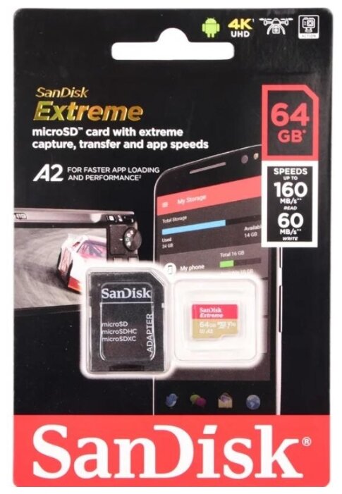 Карта памяти micro SDXC 64Gb SanDisk Extreme U3 интересное: