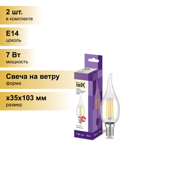 IEK Лампа светодиодная LED Свеча на ветру, серия 360°, E14, CB35, 7 Вт, 3000 K, теплый свет