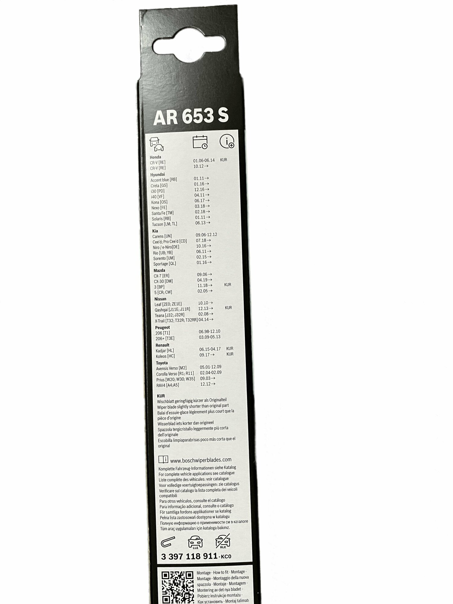 Щетки стеклоочистителя HONDA: ACCORD VIII 2.0 /2.2 i-CTDi/2.4 03-, ACCORD VIII Tourer 2.0 /2.2 i-CTDi/2.4 03-, CR-V III 2.0 i-VTEC/2.2 i-CTDi 07-, CR, 3397118911 BOSCH 3 397 118 911