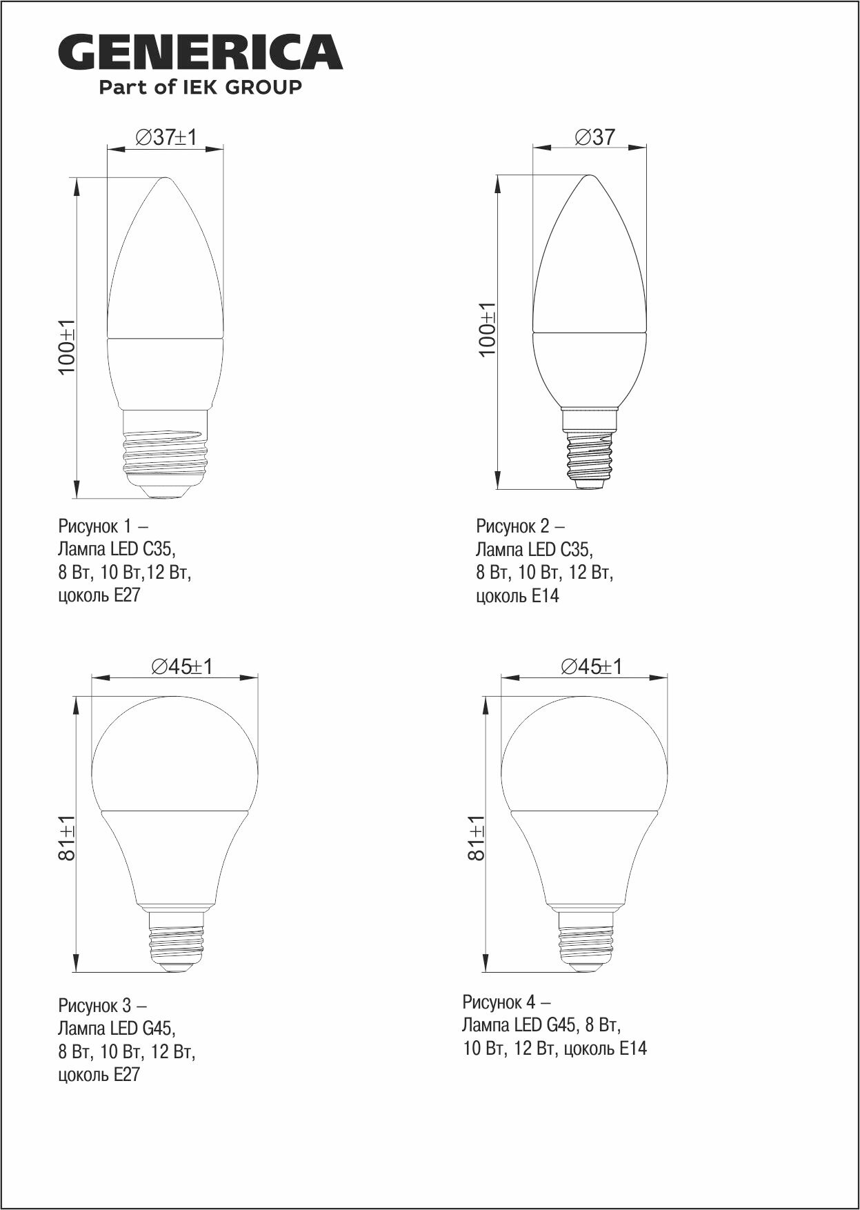Светодиодная лампа GENERICA LL-G45-12-230-40-E27-G