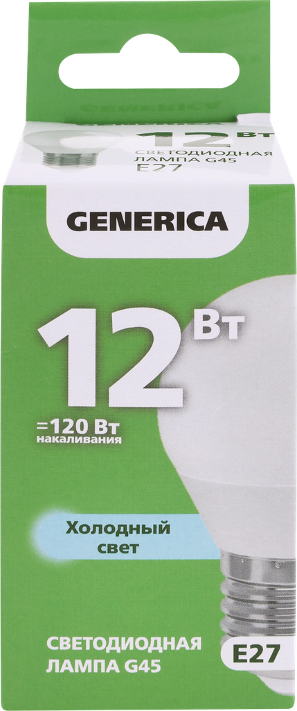 GENERICA шар G45 E27 12W(1200lm) 3000K 2K 45x81 матов. LL-G45-12-230-30-E27-G (арт. 827995)