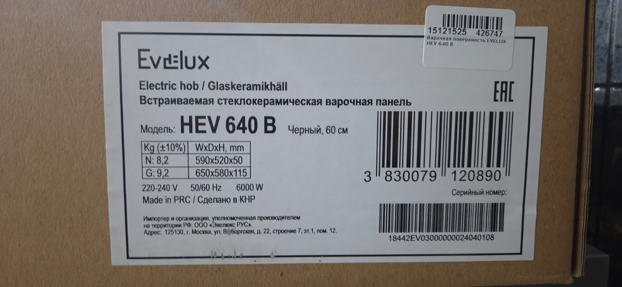 Электрическая варочная панель HEV 640 B Evelux Evelux